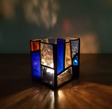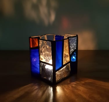 Photophores, décorations, suspensions : des objets en verre coloré, conçus avec soin, pour apporter lumière et poésie à votre décoration.